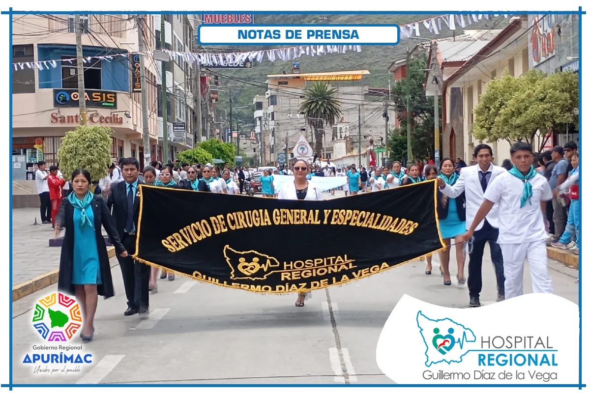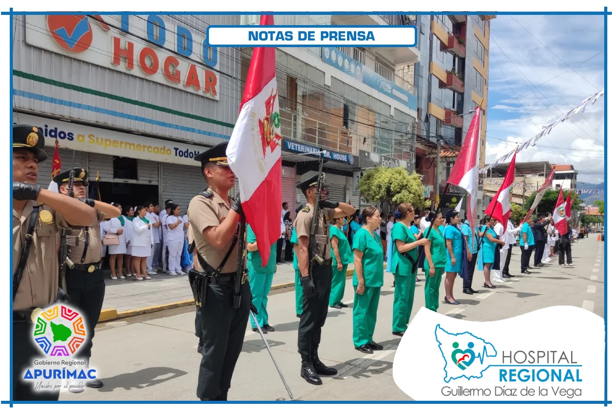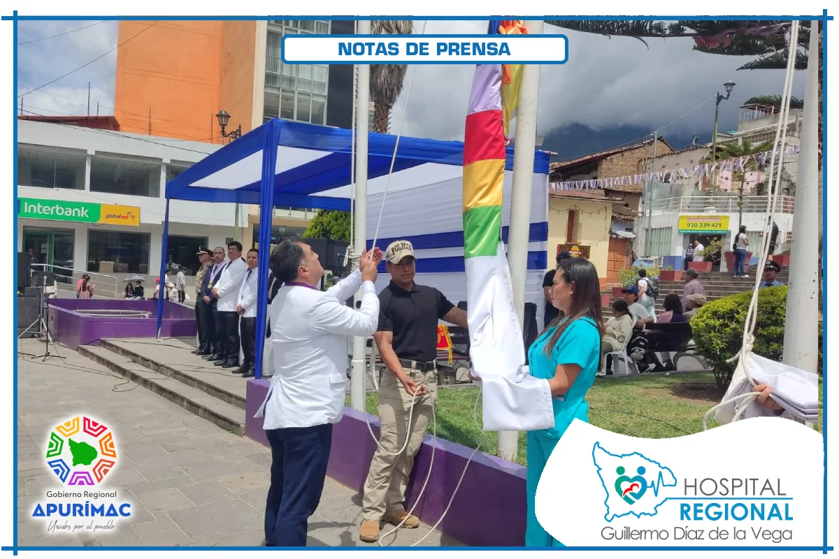 En el marco de las actividades oficiales por el 62.° aniversario de creación institucional, servidores del Hospital Regional Guillermo Díaz de la Vega de Abancay participaron el domingo 16 de noviembre en la ceremonia de izamiento del Pabellón Nacional, desarrollada en la Plaza Micaela Bastidas, reafirmando el compromiso de la institución con la salud de la población abanquina y apurimeña.