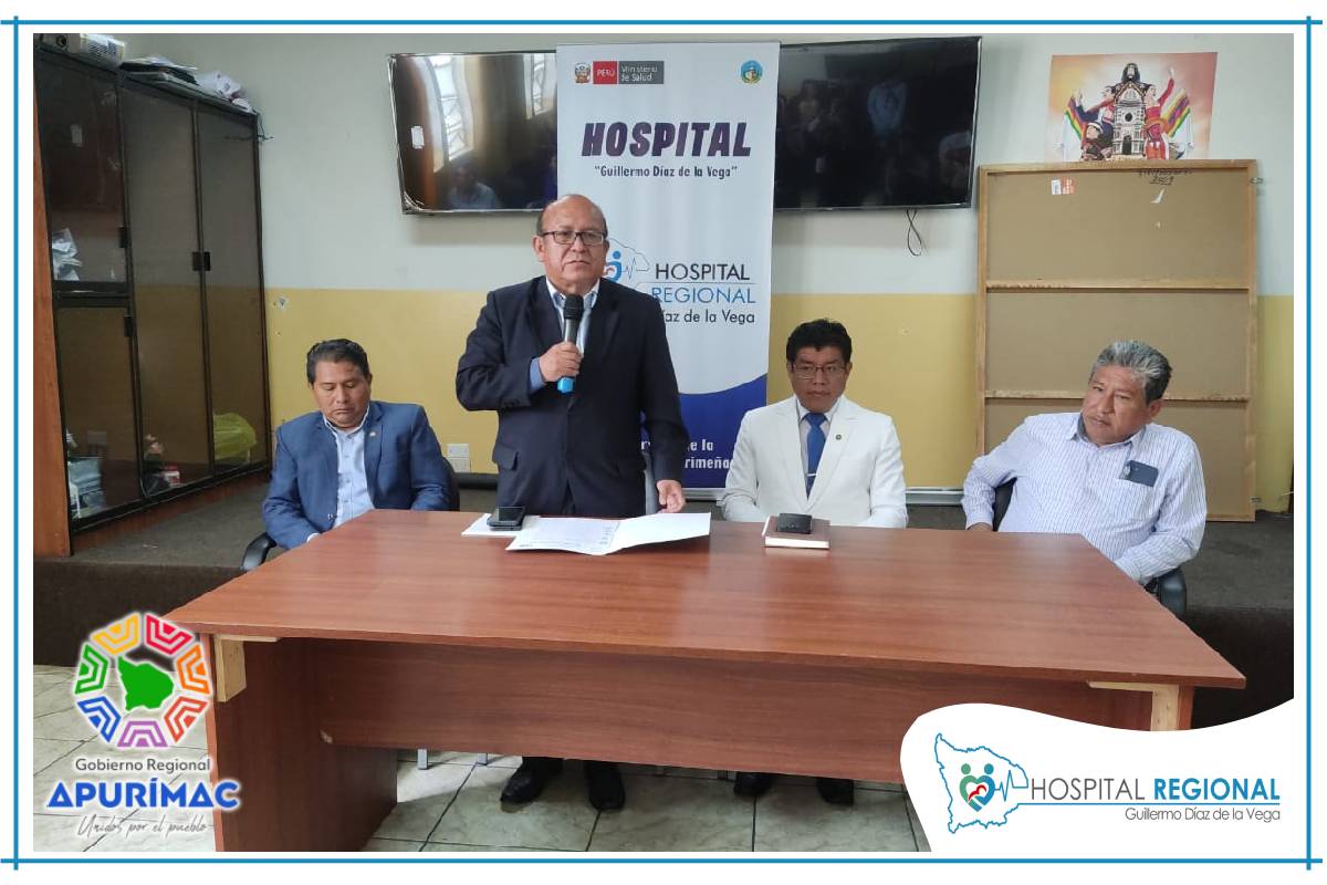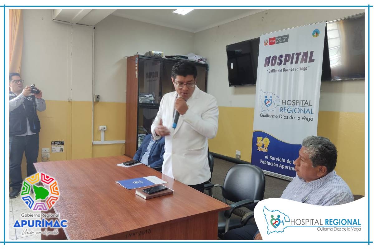 En la presentación del nuevo funcionario se contó con la presencia del M.C. Carlos Monteagudo Gonzales Director Regional de Salud de Apurímac quien estuvo acompañado del Abogado Erick Baler Prado asesor legal de la Diresa Apurímac y el M.C. Isnel Renan Ramos Morón ex director del nosocomio regional.