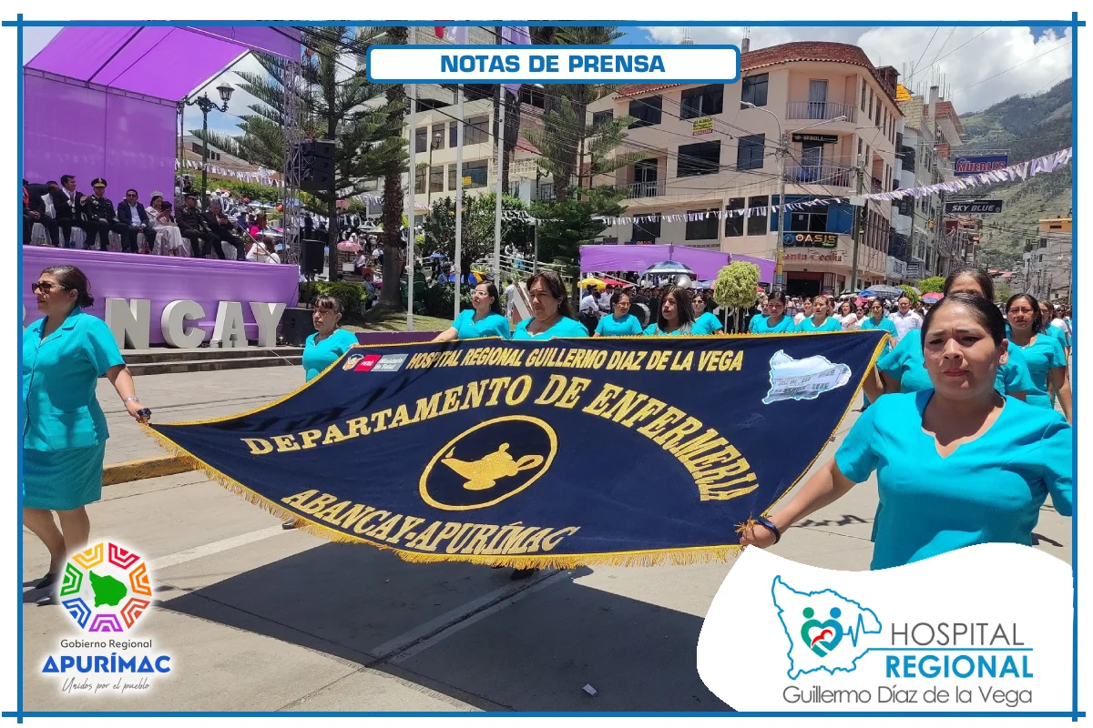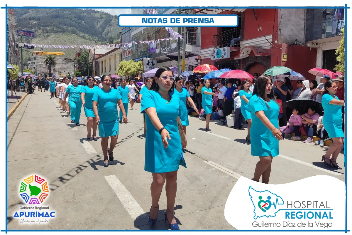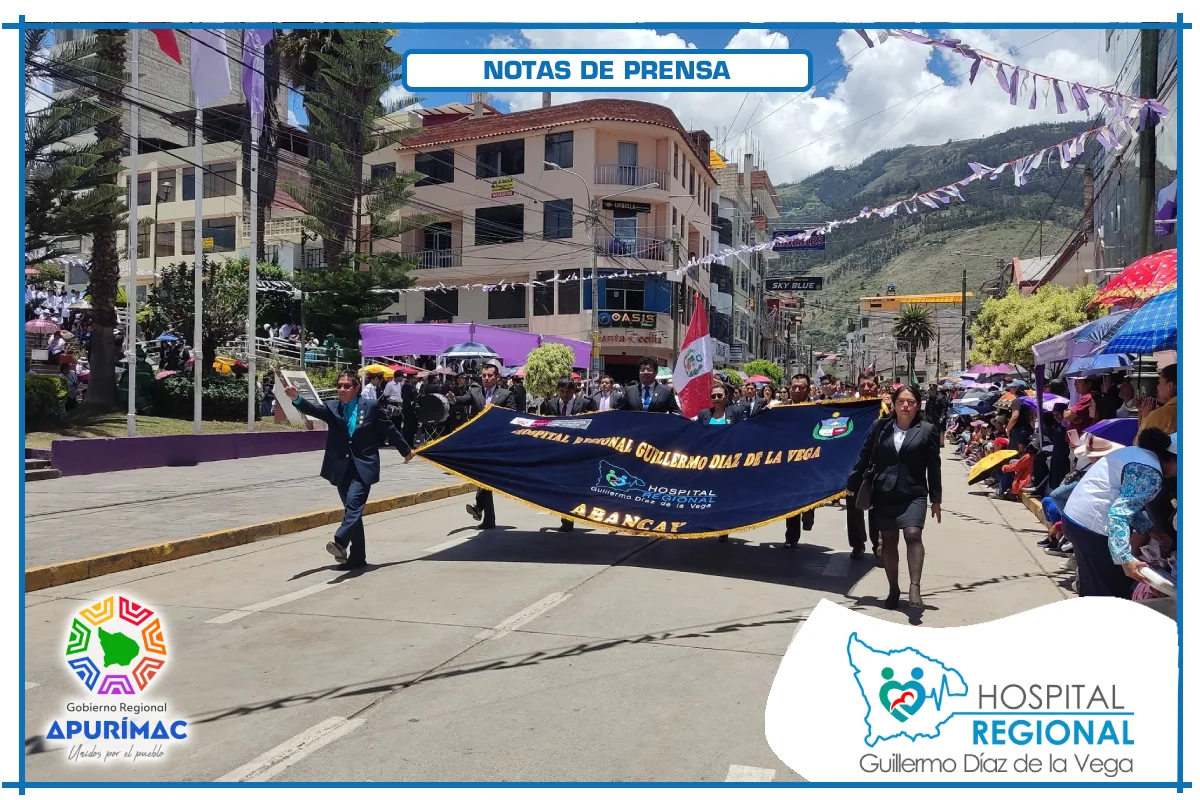 En el marco de las celebraciones por el 151.° aniversario de Elevación de Villa a Ciudad de Abancay, el Hospital Regional Guillermo Díaz de la Vega de Abancay tuvo una participación destacada en el Desfile Cívico Institucional, desarrollado en la avenida Arenas, una de las actividades centrales organizadas por la Municipalidad Provincial de Abancay.