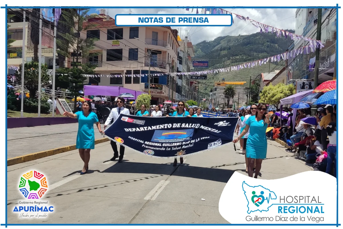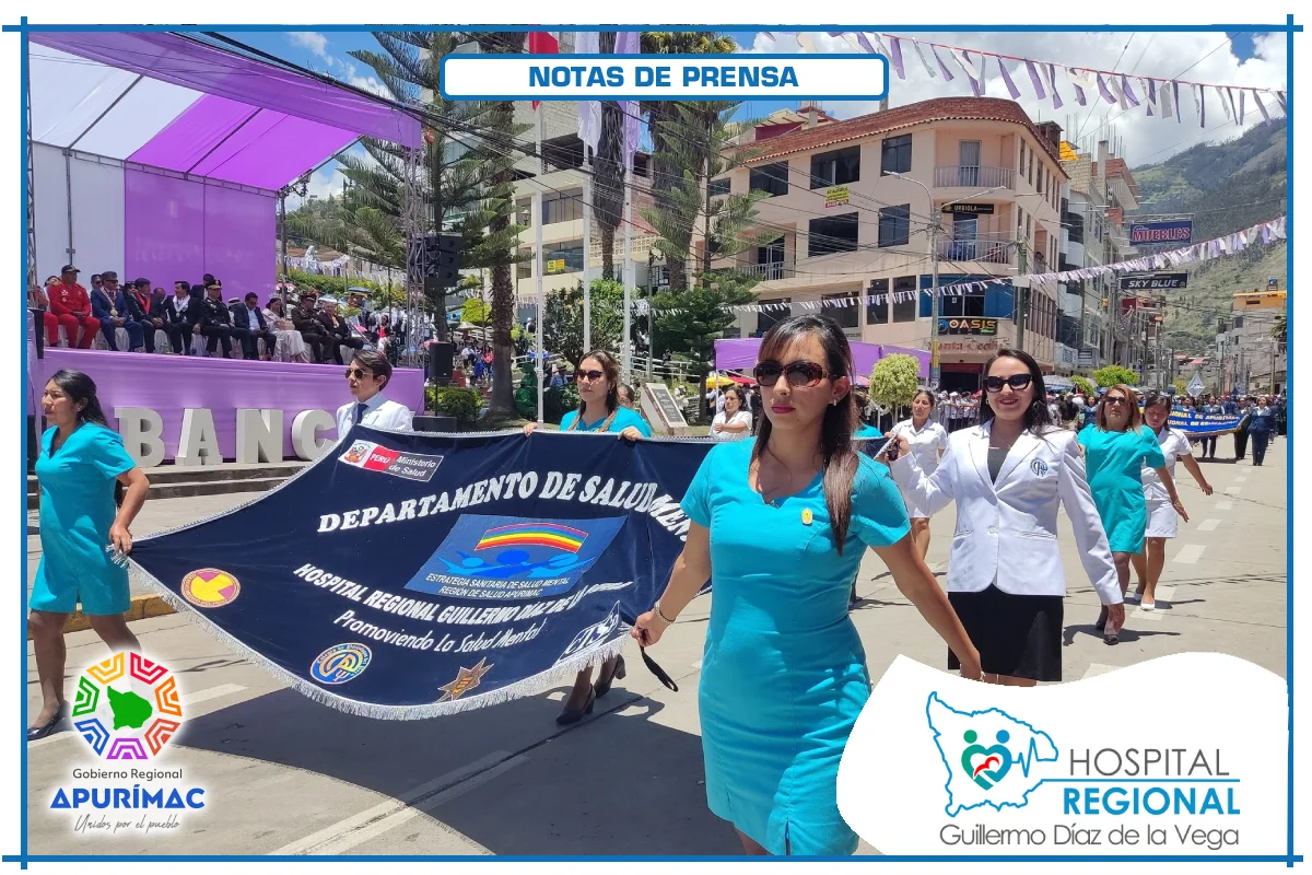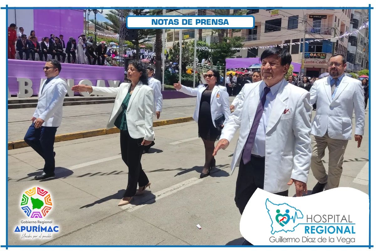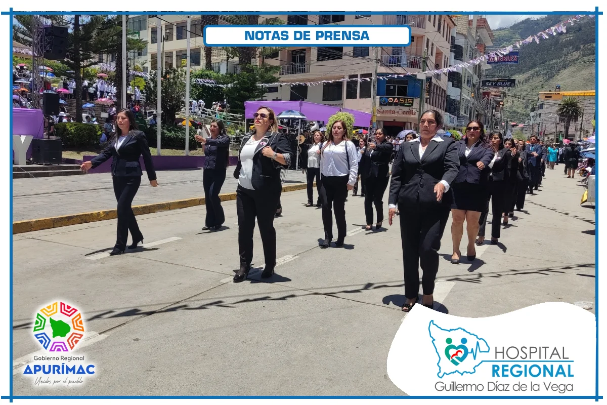 En el marco de las celebraciones por el 151.° aniversario de Elevación de Villa a Ciudad de Abancay, el Hospital Regional Guillermo Díaz de la Vega de Abancay tuvo una participación destacada en el Desfile Cívico Institucional, desarrollado en la avenida Arenas, una de las actividades centrales organizadas por la Municipalidad Provincial de Abancay.
