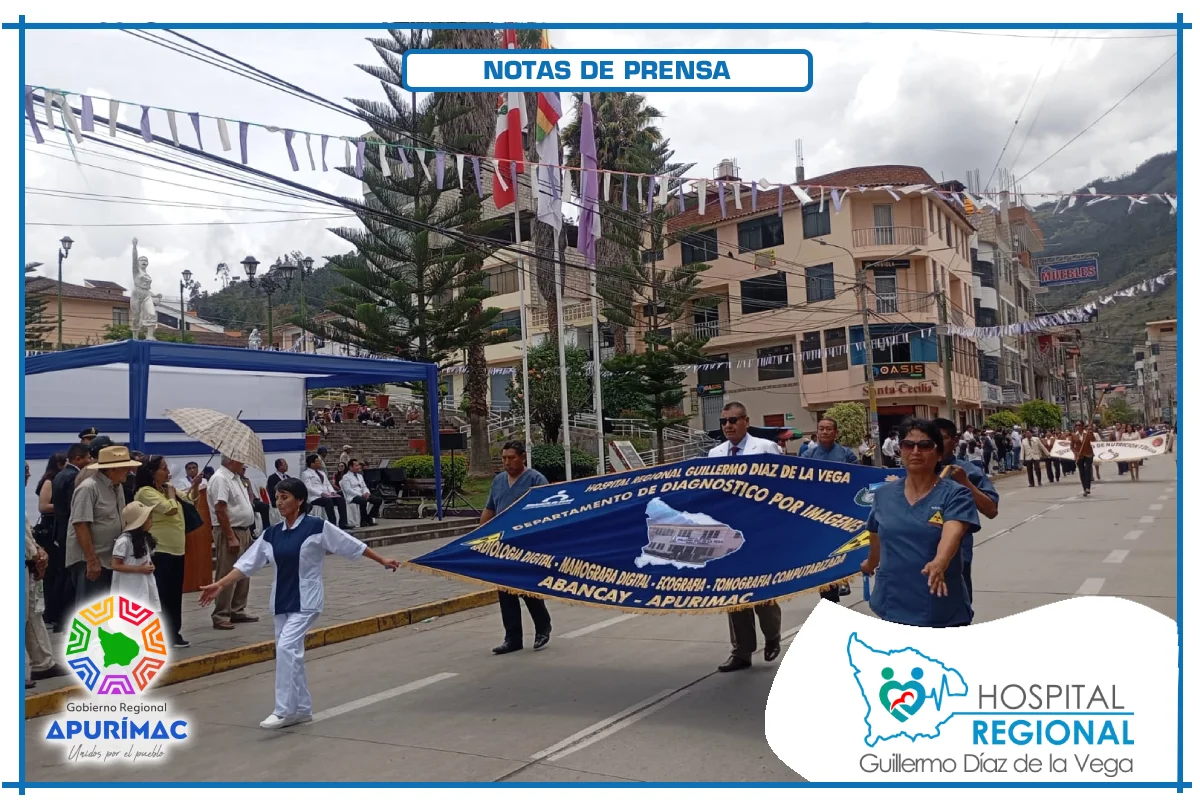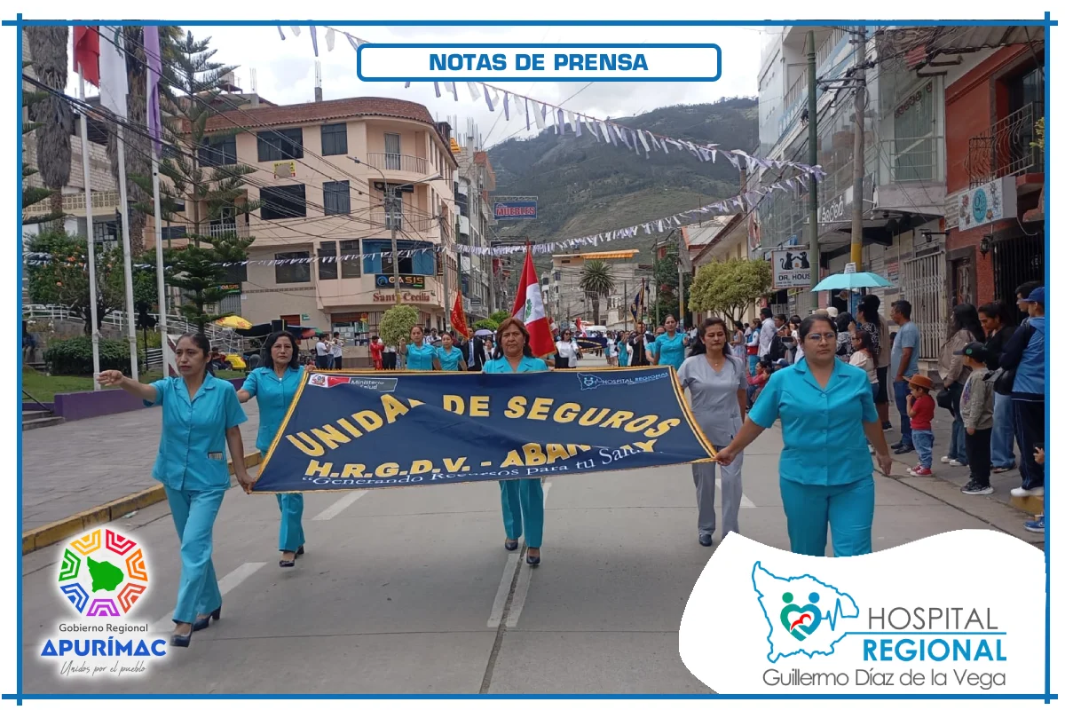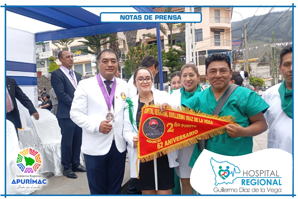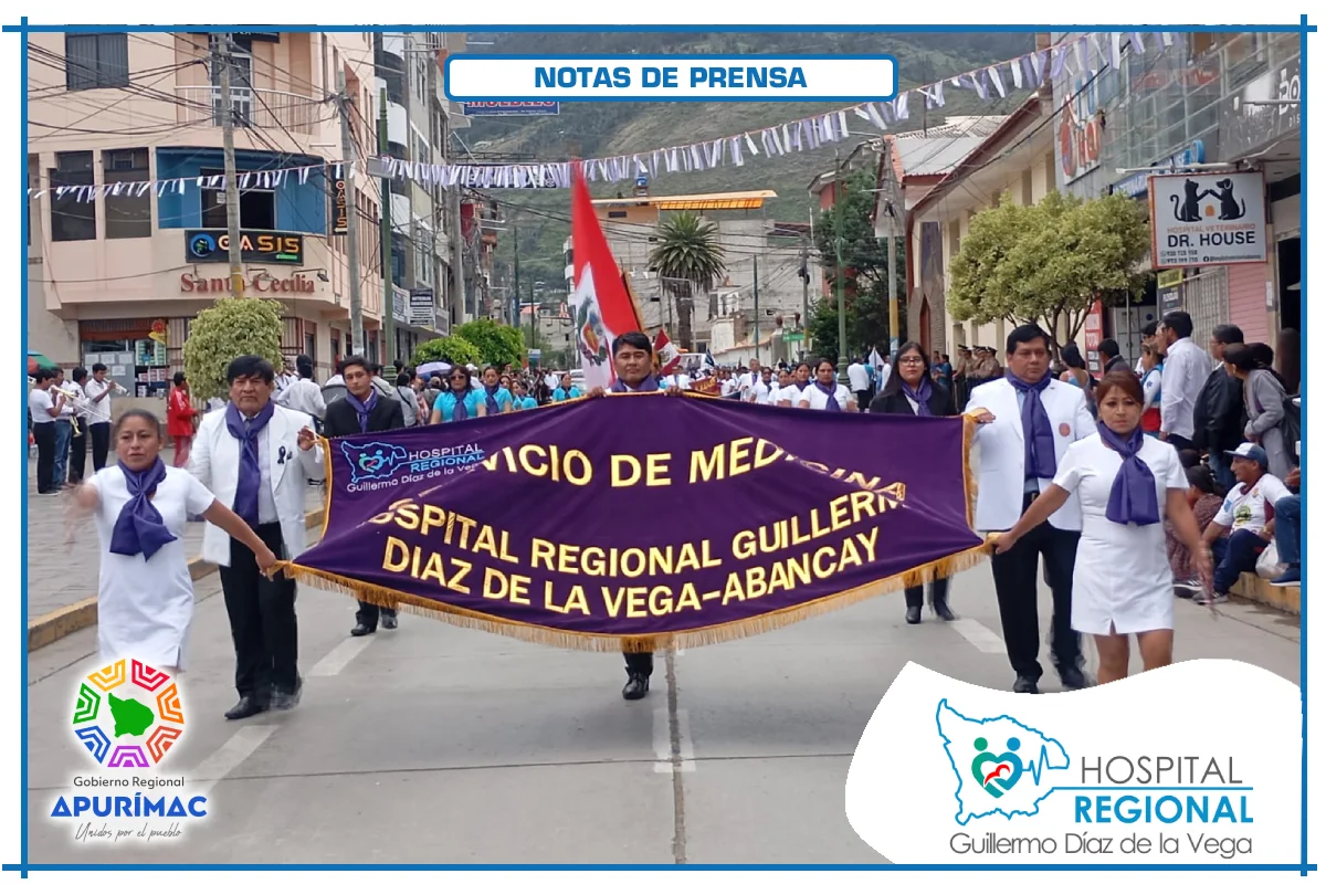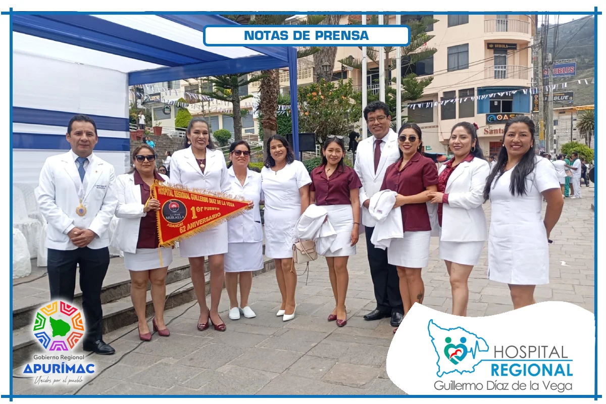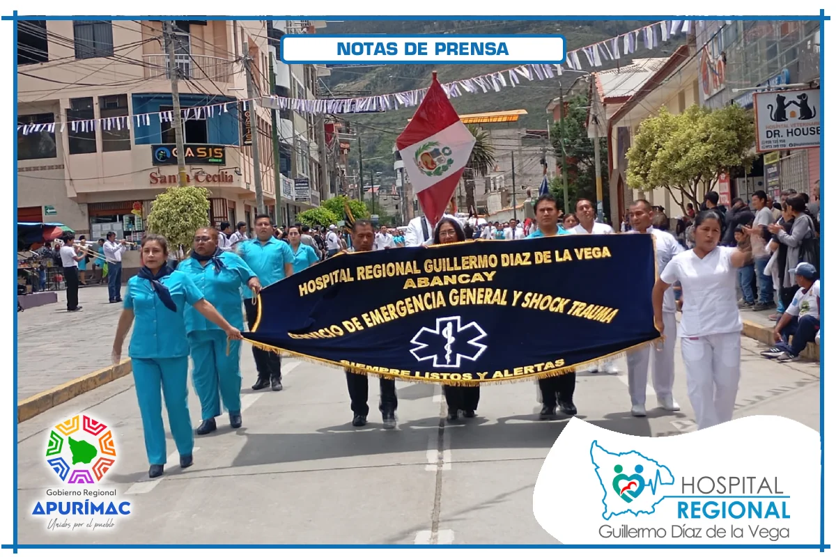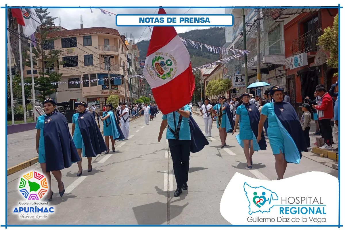 En el marco de las actividades oficiales por el 62.° aniversario de creación institucional, servidores del Hospital Regional Guillermo Díaz de la Vega de Abancay participaron el domingo 16 de noviembre en la ceremonia de izamiento del Pabellón Nacional, desarrollada en la Plaza Micaela Bastidas, reafirmando el compromiso de la institución con la salud de la población abanquina y apurimeña.