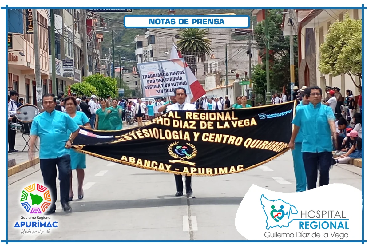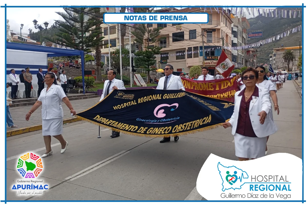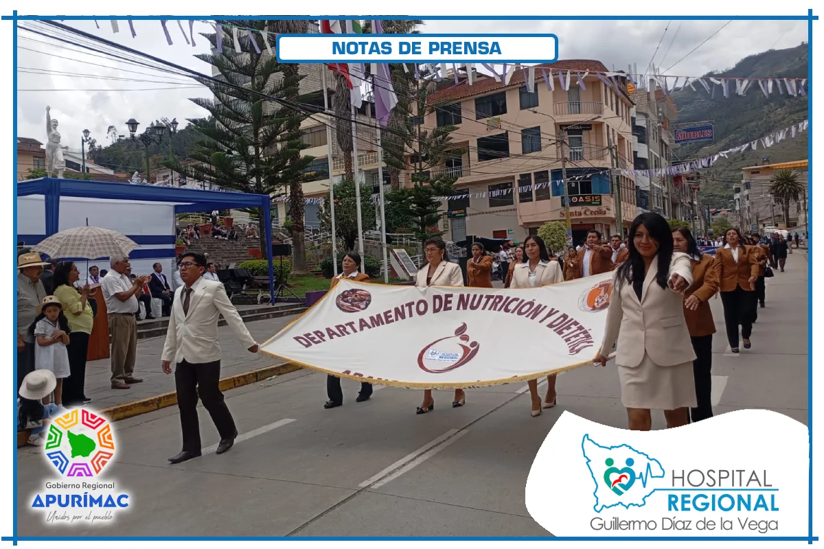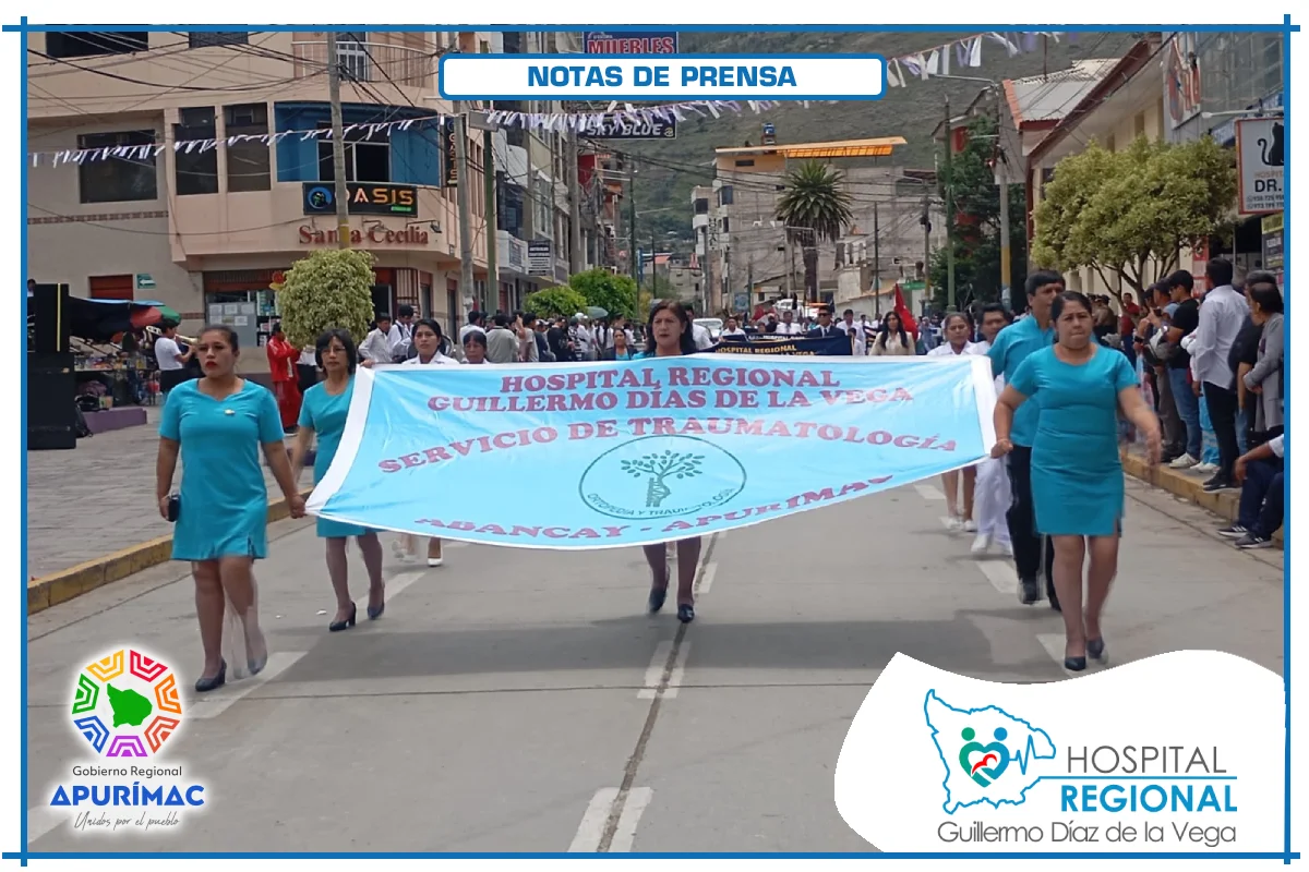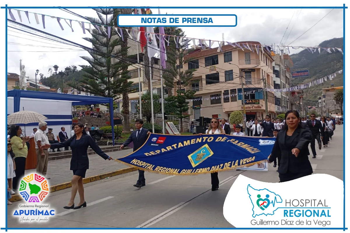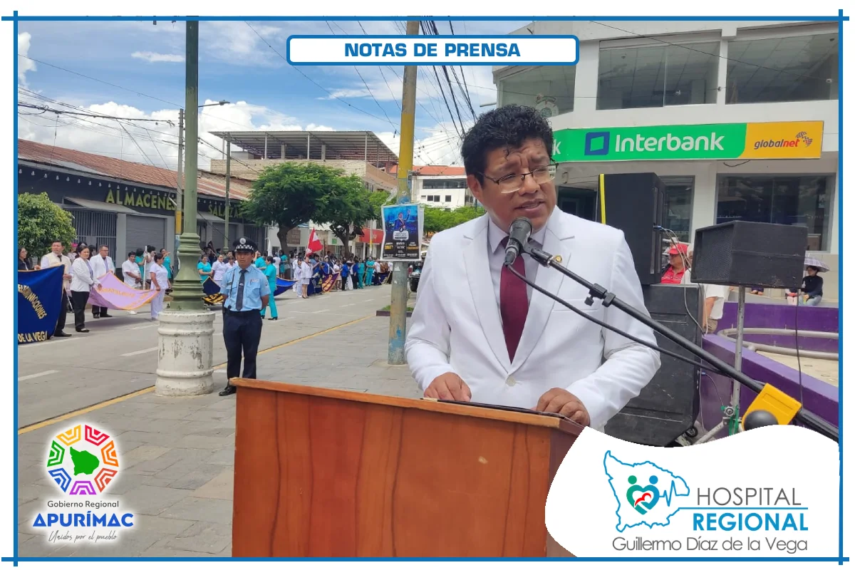 En el marco de las actividades oficiales por el 62.° aniversario de creación institucional, servidores del Hospital Regional Guillermo Díaz de la Vega de Abancay participaron el domingo 16 de noviembre en la ceremonia de izamiento del Pabellón Nacional, desarrollada en la Plaza Micaela Bastidas, reafirmando el compromiso de la institución con la salud de la población abanquina y apurimeña.