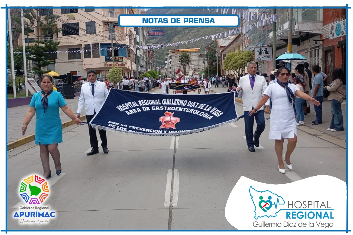 La delegación estuvo encabezada por el director, su equipo de gestión y el personal asistencial y administrativo, quienes desfilaron con entusiasmo, disciplina e identificación institucional. Las autoridades presentes, entre ellas el Abog. José Miranda Espinoza, primer regidor de la Municipalidad Provincial de Abancay; representantes de la Policía Nacional del Perú; el M.C. José Ponce Velásquez, decano del Colegio Médico de Apurímac; y el C.D. Juan Chavigurí Monzón, decano del Colegio de Odontólogos, saludaron el paso del nosocomio regional.