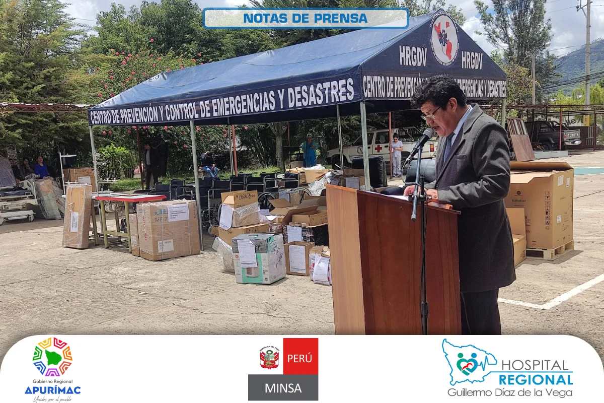 En un acto protocolar, la Dirección del Hospital Regional Guillermo Díaz de la Vega de Abancay realizó la entrega de bienes y equipos a diferentes servicios del nosocomio regional, marcando un importante avance en la modernización de la institución, luego de varios años sin una renovación significativa de equipamiento.