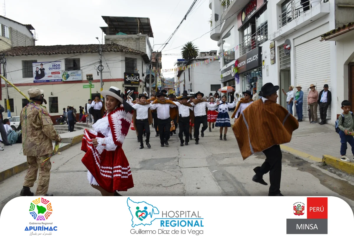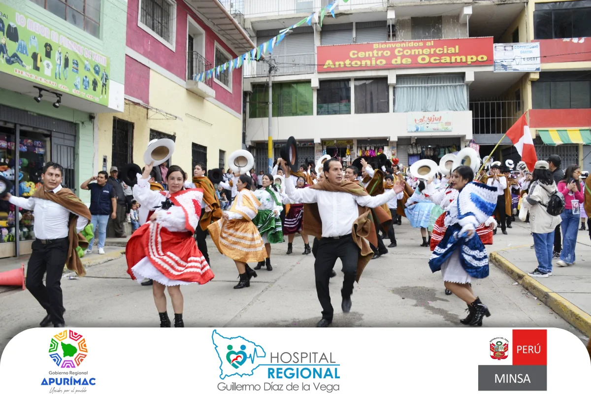 El Hospital Regional Guillermo Díaz de la Vega de Abancay participó en el pasacalle carnavalesco por el 25.° aniversario de la Cooperativa de Ahorro y Crédito Los Andes, reafirmando su compromiso con el fortalecimiento de la identidad cultural y la integración institucional en la región.